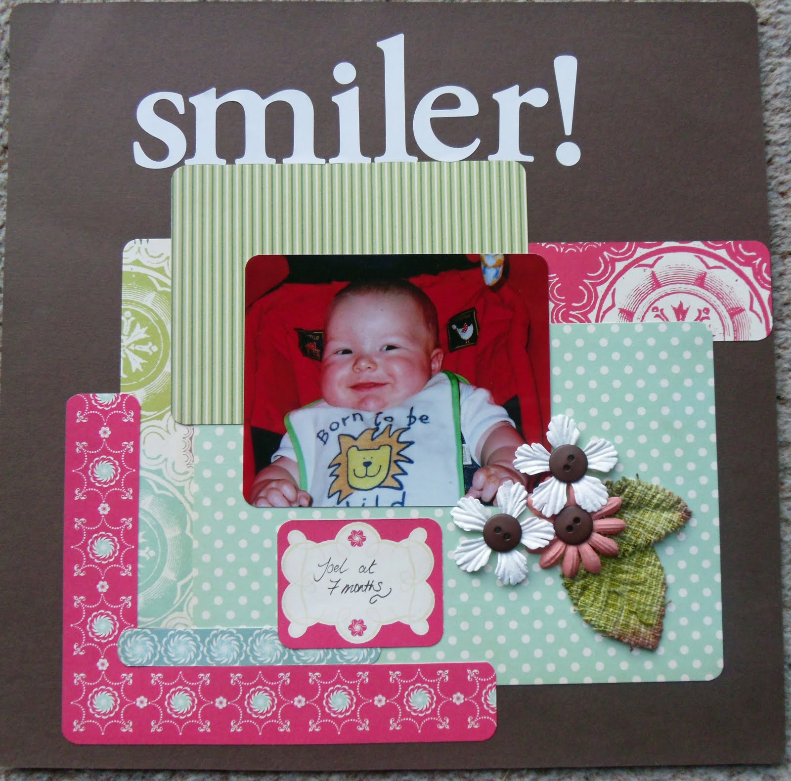 I used Citrus, Pool, and Sailboat inks, Basic Grey two scoops swirly stamps, Scenic route chipboard saying and all other pp's and embellies are from June' Gottacraft kit.